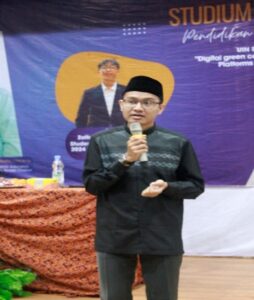 Inisiatif kampus berkelanjutan menjadi sorotan utama yang disampaikan narasumber pertama dalam Studium General Internasional yang digelar di Auditorium FITK UIN Siber Syekh Nurjati Cirebon, dengan menghadirkan gagasan futuristik yang memadukan nilai-nilai Islam, teknologi, dan kepedulian lingkungan. Dalam kegiatan ini, peserta diajak mengeksplorasi enam pilar utama sebagai fondasi peradaban kampus yang berkelanjutan. Pilar pertama, Ilmu Berwawasan Lingkungan, mengajak sivitas akademika untuk beralih dari penggunaan kertas ke kajian Al-Qur’an digital serta mengembangkan fikih lingkungan berbasis digital. Pilar kedua, Dakwah Hijau, menginspirasi penggunaan media sosial sebagai sarana menyuarakan keadilan ekologis dari sudut pandang Islam.